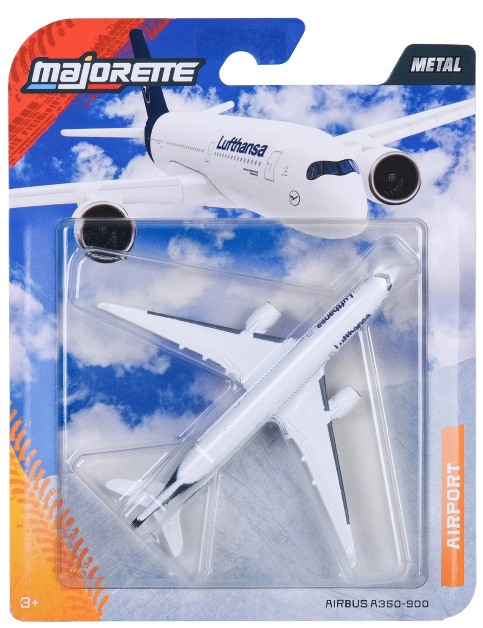 Dieses Metallmodell aus der Serie Majorette Airport bildet das echte Passagierflugzeug Airbus A350-900 in ikonischem weißem Design mit schwarzen Elementen und dem Lufthansa-Logo originalgetreu nach. Dank präziser Verarbeitung und robustem Metallmaterial ist es eine tolle Ergänzung für jede Kindersammlung und ein schönes Geschenk für kleine Flugzeugbegeisterte.