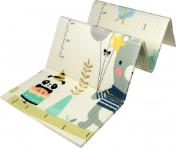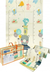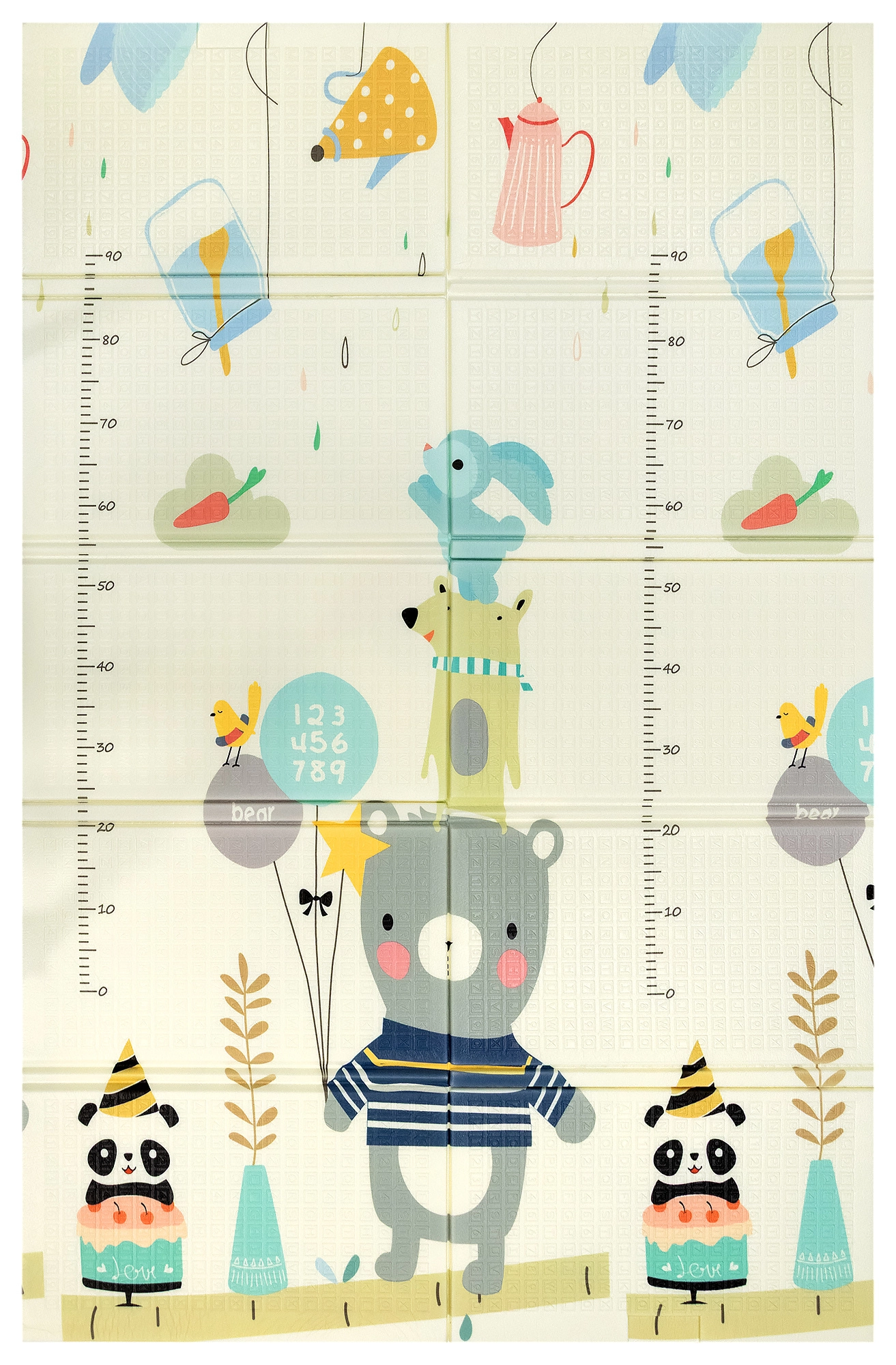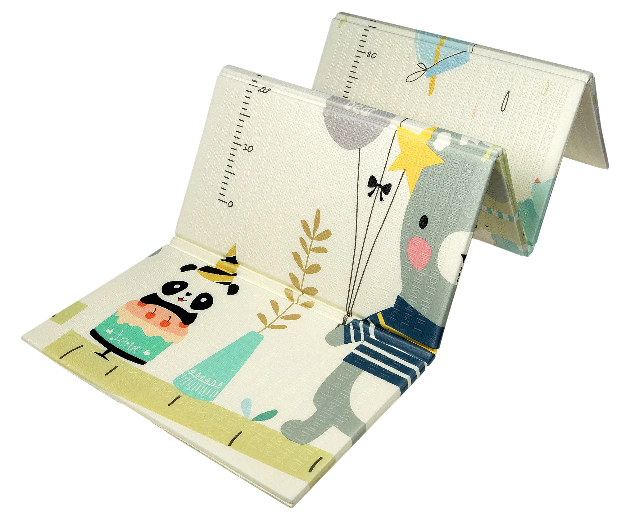Entdecken Sie eine vielseitige Matte, die Ihr Kind von den ersten Lebenstagen an begleitet. Dank der Dicke von 1 cm isoliert sie hervorragend gegen Kälte und dämpft Stöße, wodurch sie ideal für sicheres Spielen, Krabbeln und die ersten Schritte ist. Das beidseitige Design bietet auf der einen Seite niedliche Pandas und auf der anderen Tiere mit Zahlen und Wachstumsskala, was die frühe Entwicklung und das Lernen fördert.