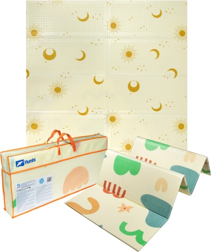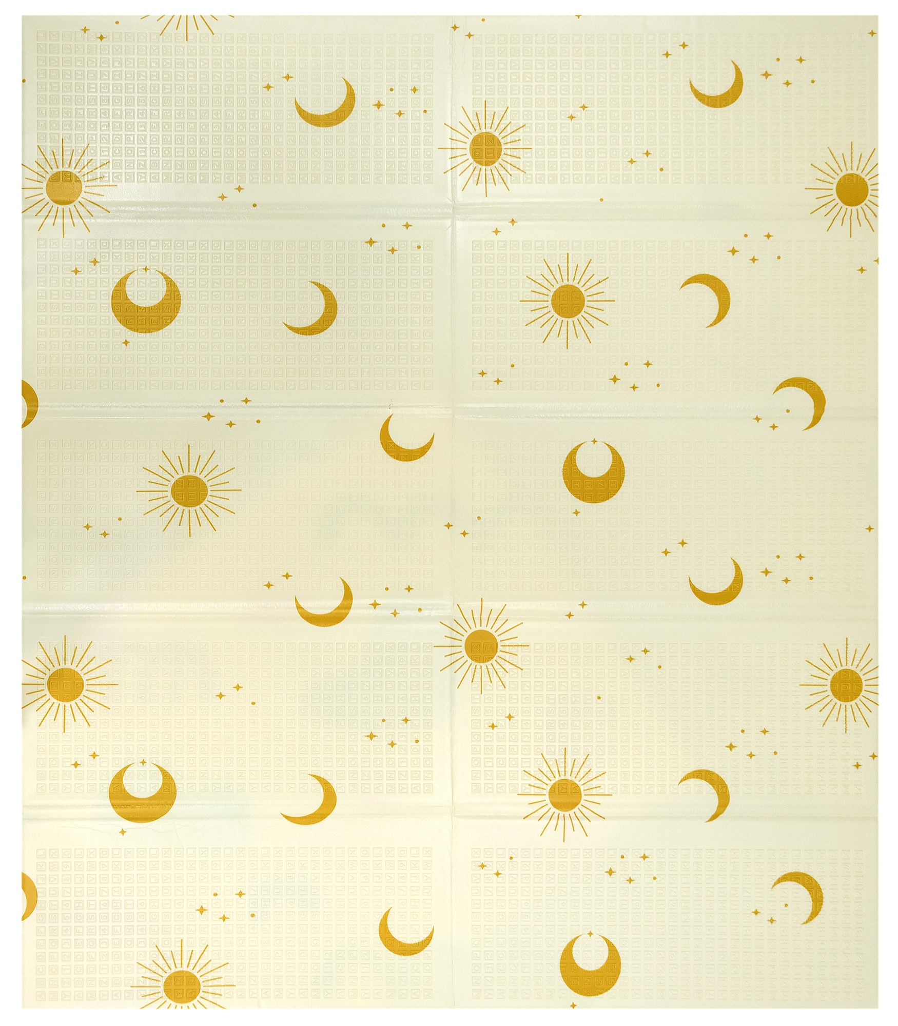 Premium XPE-Schaum sorgt für hervorragende Stoßdämpfung, Wärmedämmung gegenüber kalten Böden und lange Lebensdauer – geruchsfrei und ohne toxische Stoffe. Die Matte eignet sich für das Kinderzimmer, Wohnzimmer und den Außenbereich – Balkon, Garten oder Picknick. Der doppelseitige Druck in sanften Farben mit Sonnen- und Mondmotiven sowie bunten Formen fördert die Wahrnehmung und passt zu modernen Interieurs.