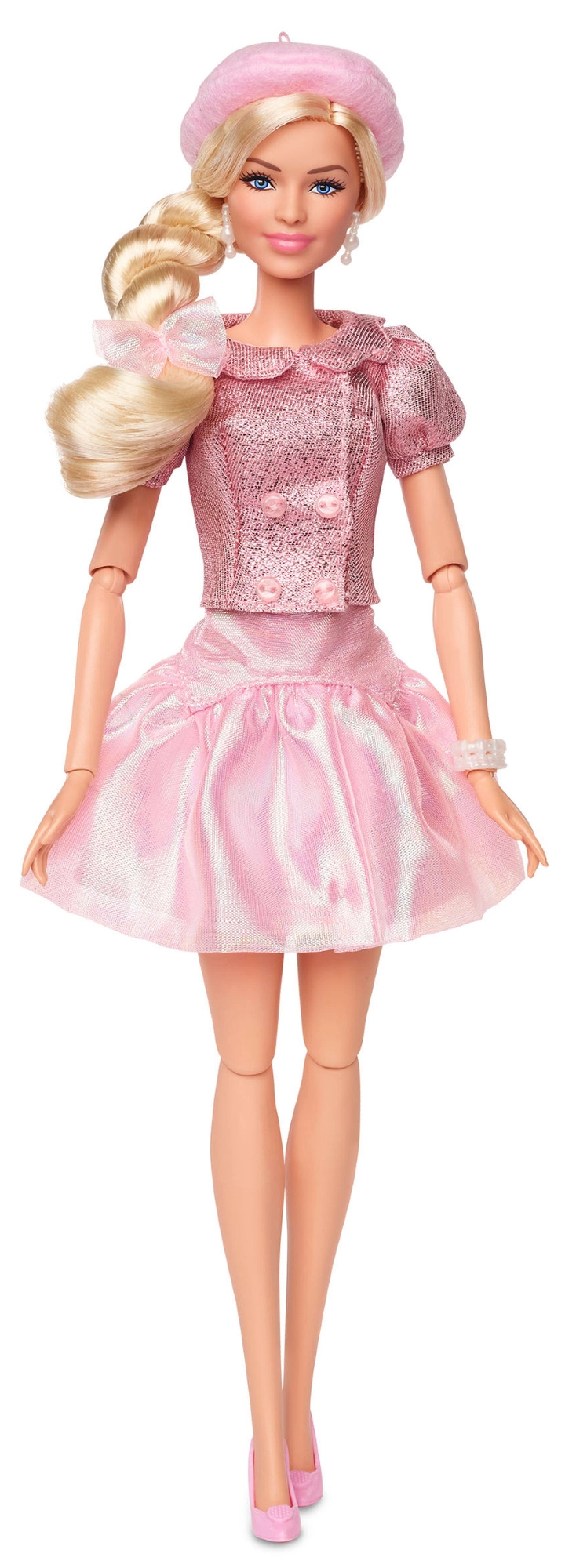 Diese stylische BARBIE-Puppe bringt den ikonischen Film-Look in zartem Rosa. Ein glitzerndes Kleid mit puffigen Ärmeln, rosa Barett und passende Accessoires ergeben ein perfekt abgestimmtes Outfit, das in jeder Sammlung und jedem Kinderzimmer hervorsticht. Die Gelenkkonstruktion ermöglicht es, Posen leicht zu verändern und Szenen aus dem Film sowie eigene Geschichten zu kreieren.