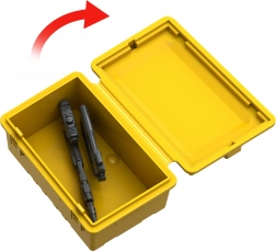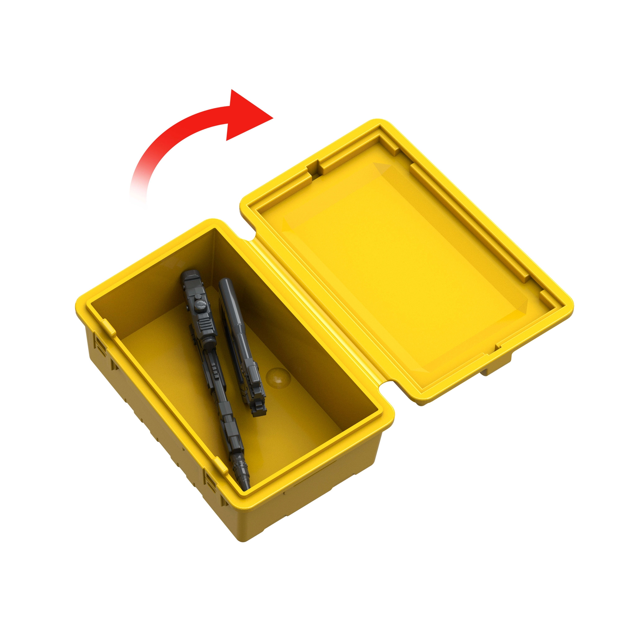 Enthalten sind zwei Menschenfiguren mit Blaster, Werkzeugen und einer gelben Kiste – ideal für Rollenspiel und Einsatzmissionen.