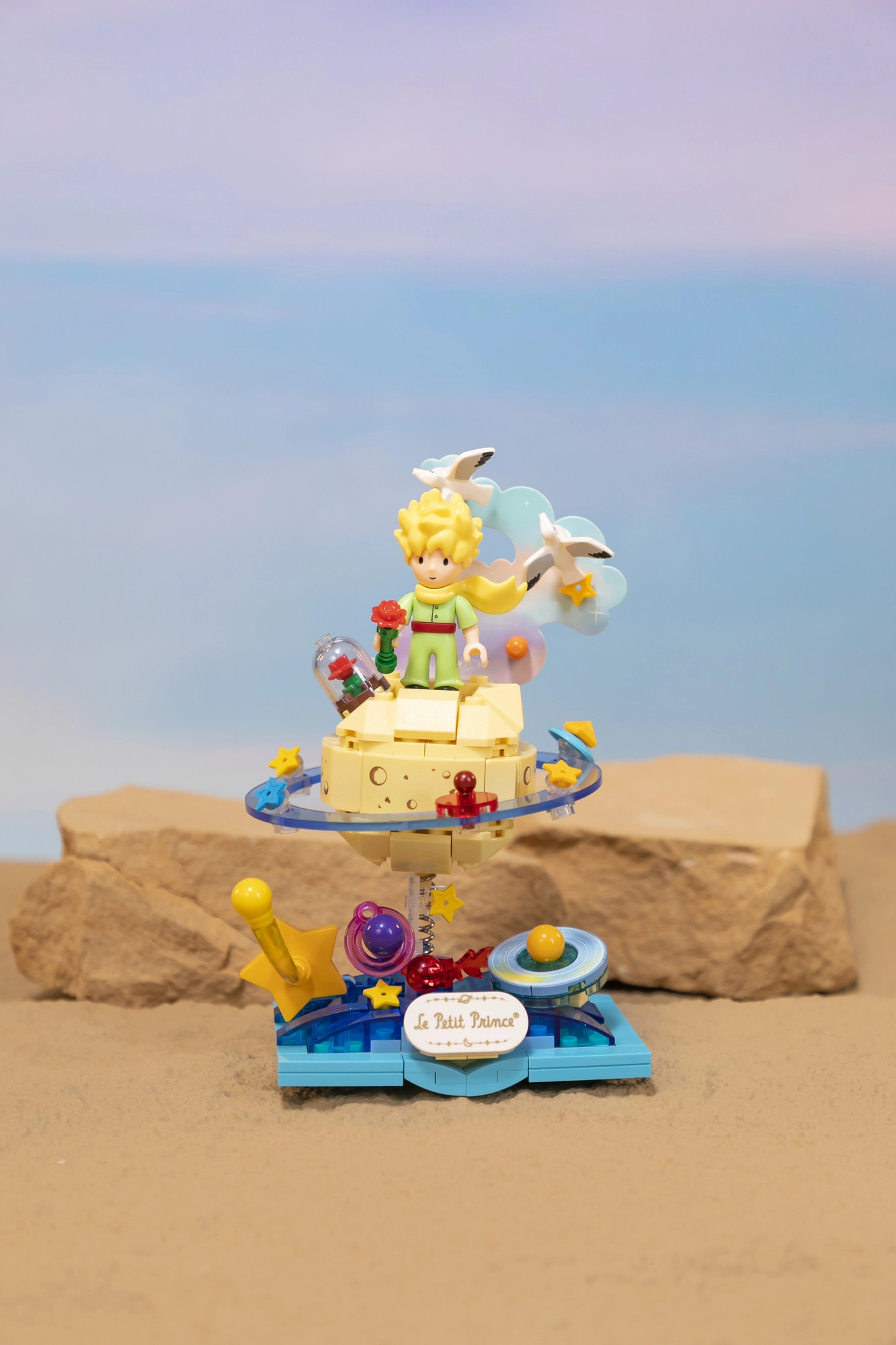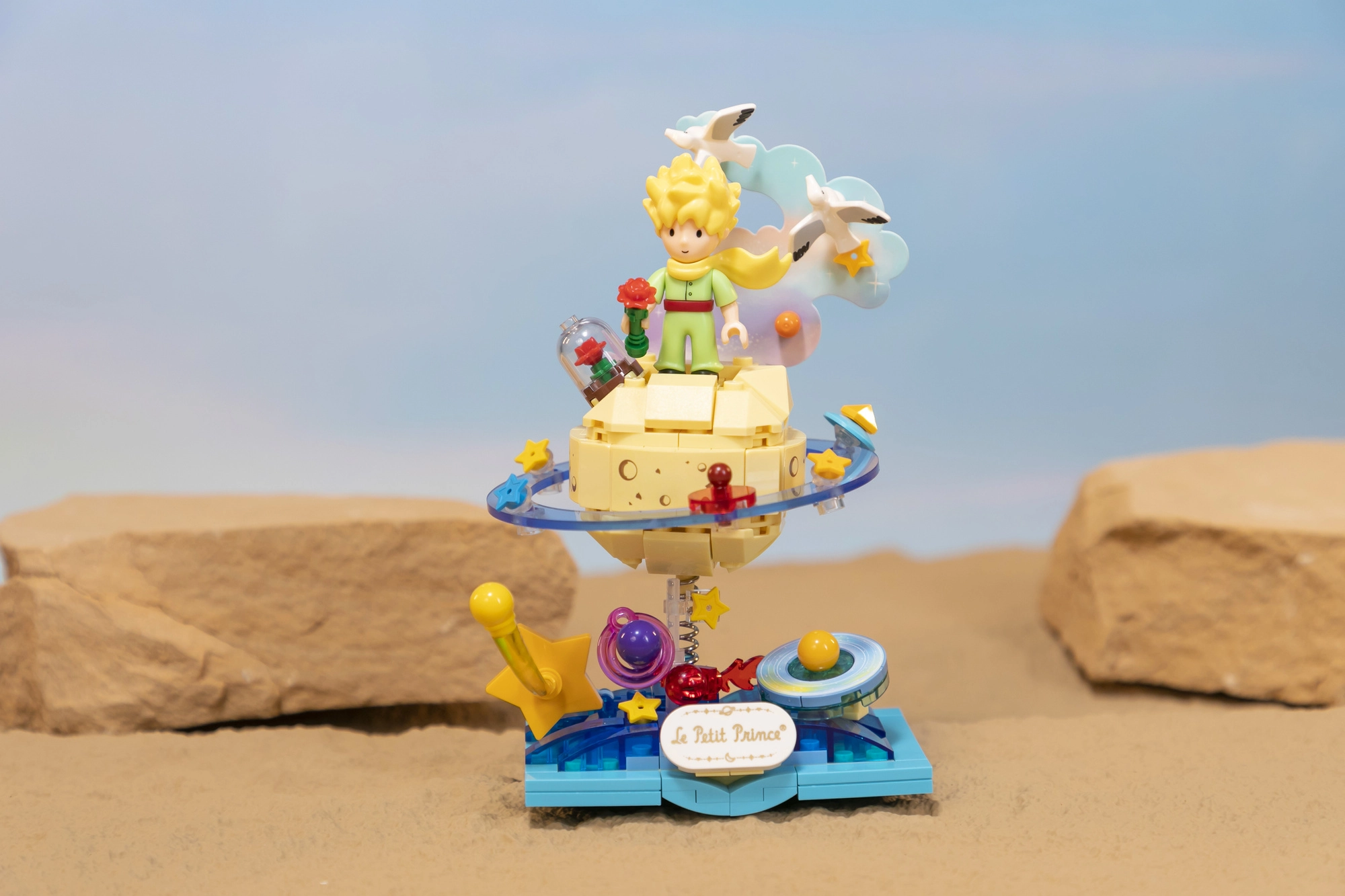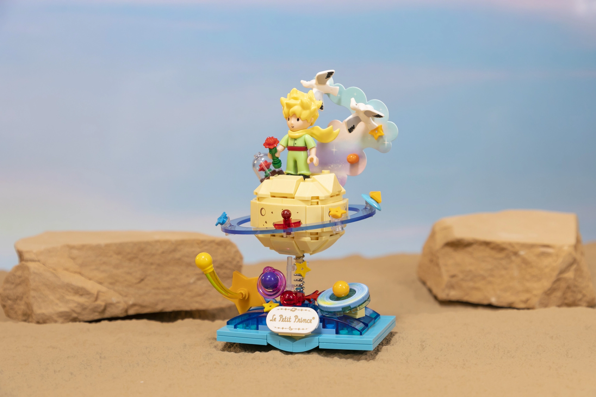 Diese offiziell lizenzierte Sammelszene, inspiriert von der Geschichte Le Petit Prince, verbindet literarische Nostalgie mit modernem Design. Sie bauen die Figur des kleinen Prinzen, der auf einem kleinen Planeten mit Ringen, Sternchen und Mini-Planeten steht – das Ergebnis ist eine elegante Dekoration, die sofort ins Auge fällt.