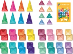 Das 48-teilige Set mit Quadraten und Dreiecken, ergänzt durch ein illustriertes Ideenheft, ist mit weiteren CONNETIX-Sets kompatibel – für grenzenlose Projekte.