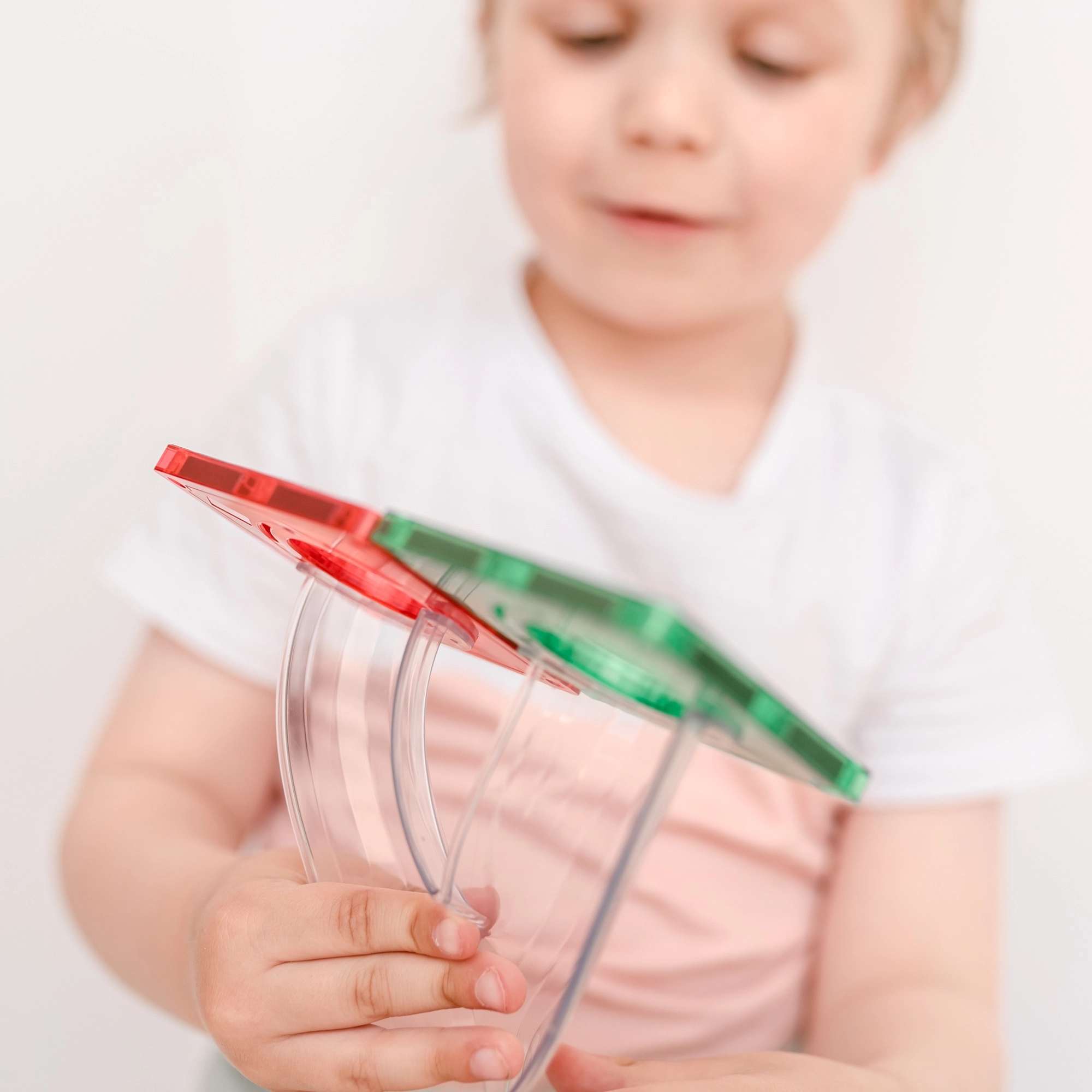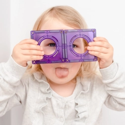 Starke, genietete Magnete ziehen sich von allen Seiten an, sodass die Platten auch bei hohen Bauwerken sicher halten. Kinder verstehen leicht die Prinzipien von Symmetrie und Gleichgewicht.
