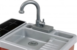 Dieses durchdachte Set ermöglicht Kindern, alltägliche Küchenabläufe sicher nachzuspielen. Dank des funktionalen Wasserhahns mit Wasserkreislauf und der Touch-Induktionsplatte mit Licht und Sound ist das Spiel maximal realistisch und unterhaltsam. Mit dabei sind Abtropfgestell, Platz für „Spülmittel“ und ein umfangreiches Set an Zubehör zum Servieren und Kochen.