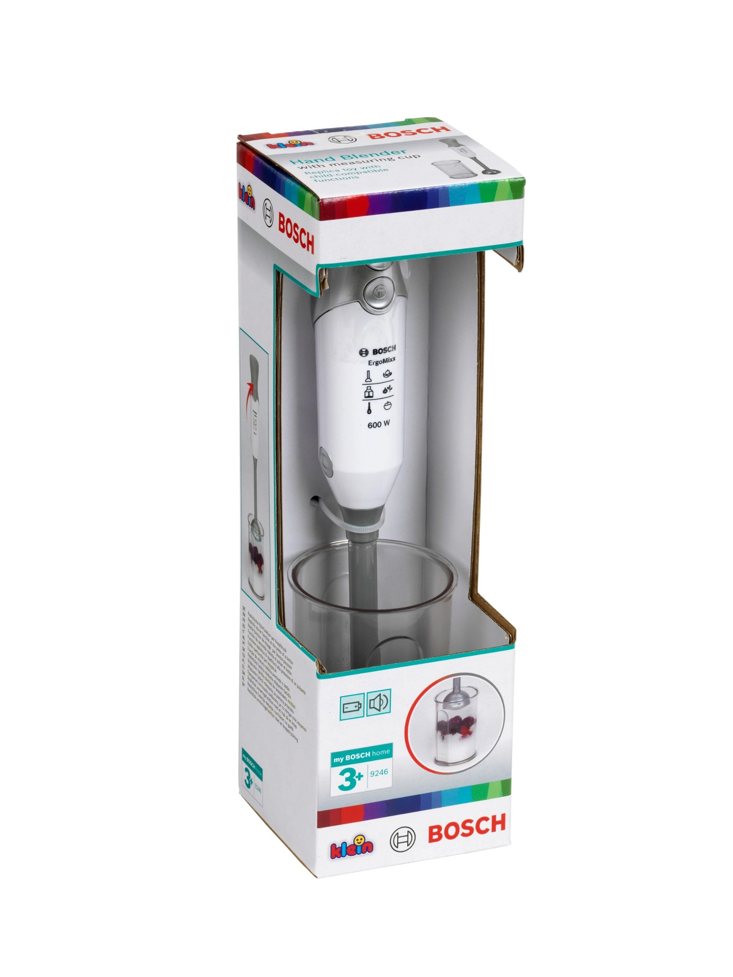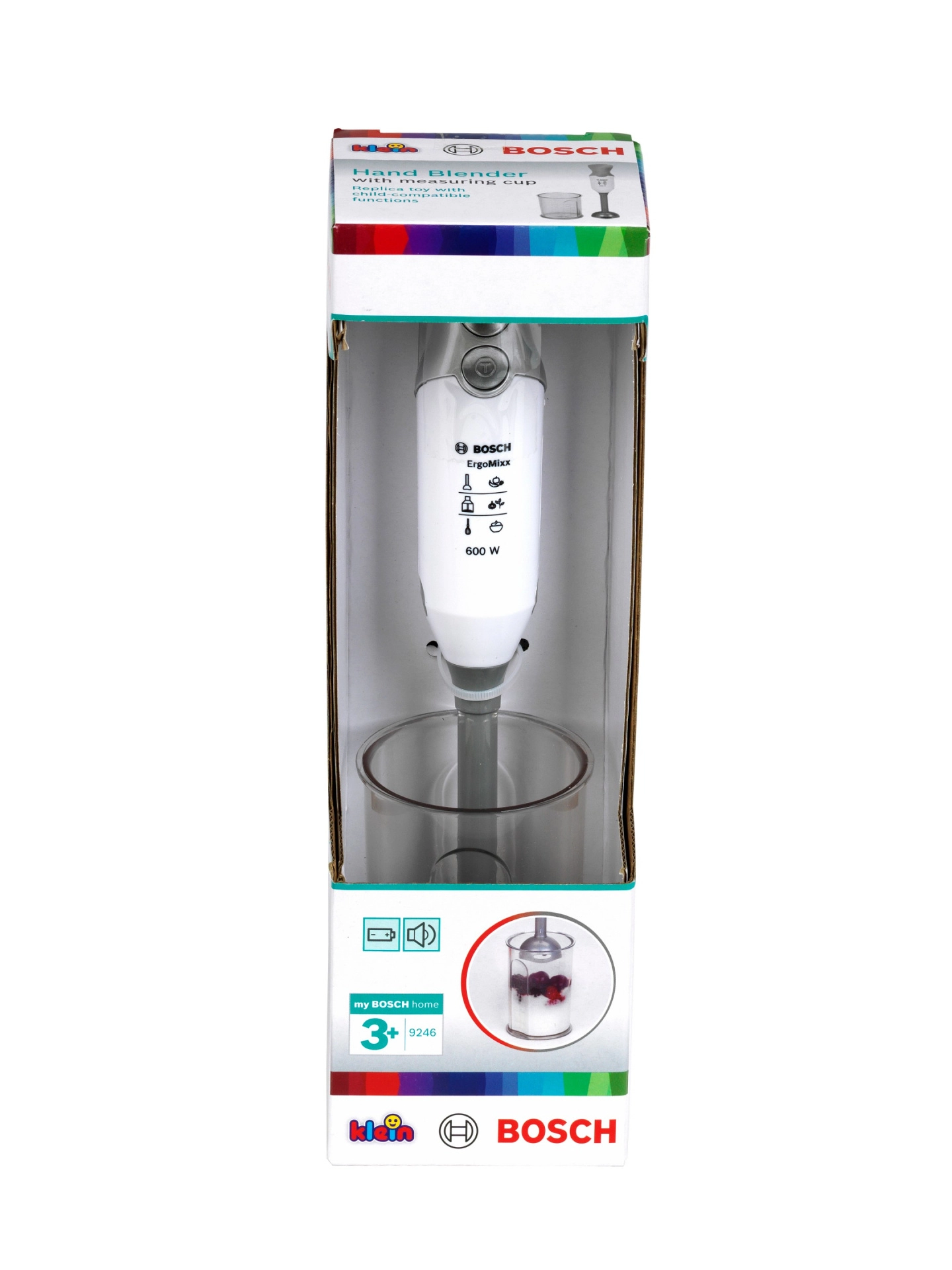 Dazu gehört ein transparenter Messbecher mit Skala (250 ml), der das Erlernen grundlegender Küchenarbeiten und die Entwicklung der Feinmotorik unterstützt. Das Spielzeug ist für Kinder ab 3 Jahren konzipiert, liegt in Größe und Form perfekt in kleinen Händen und ergänzt wunderbar die anderen Geräte der BOSCH-Kinderserie.