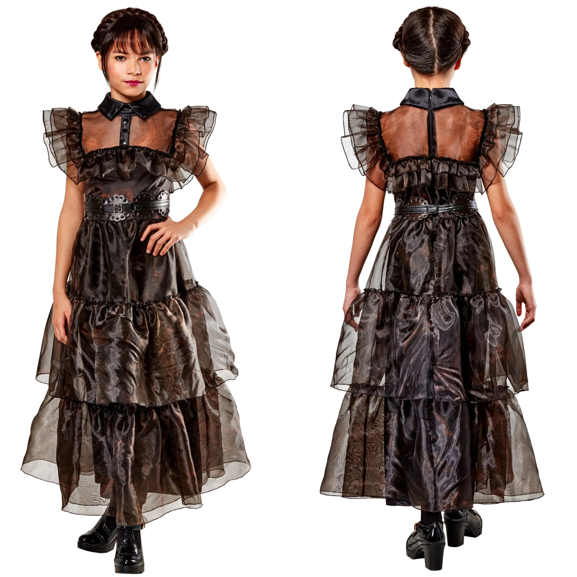 Für Fans der Netflix-Serie WEDNESDAY sind diese Mädchenkleider die perfekte Wahl. Mehrlagige transparente Rüschen, ein höherer Kragen und ein Ziergürtel erzeugen einen authentischen gotischen Look, der auf den ersten Blick begeistert. Der Reißverschluss am Rücken erleichtert das Anziehen und der bequeme Schnitt ist wie gemacht für Tanz und lange Feiern.
