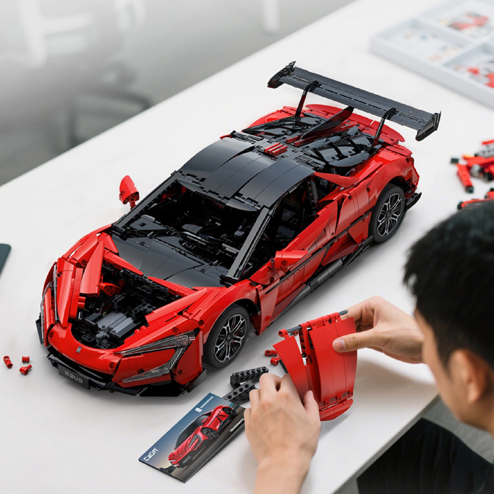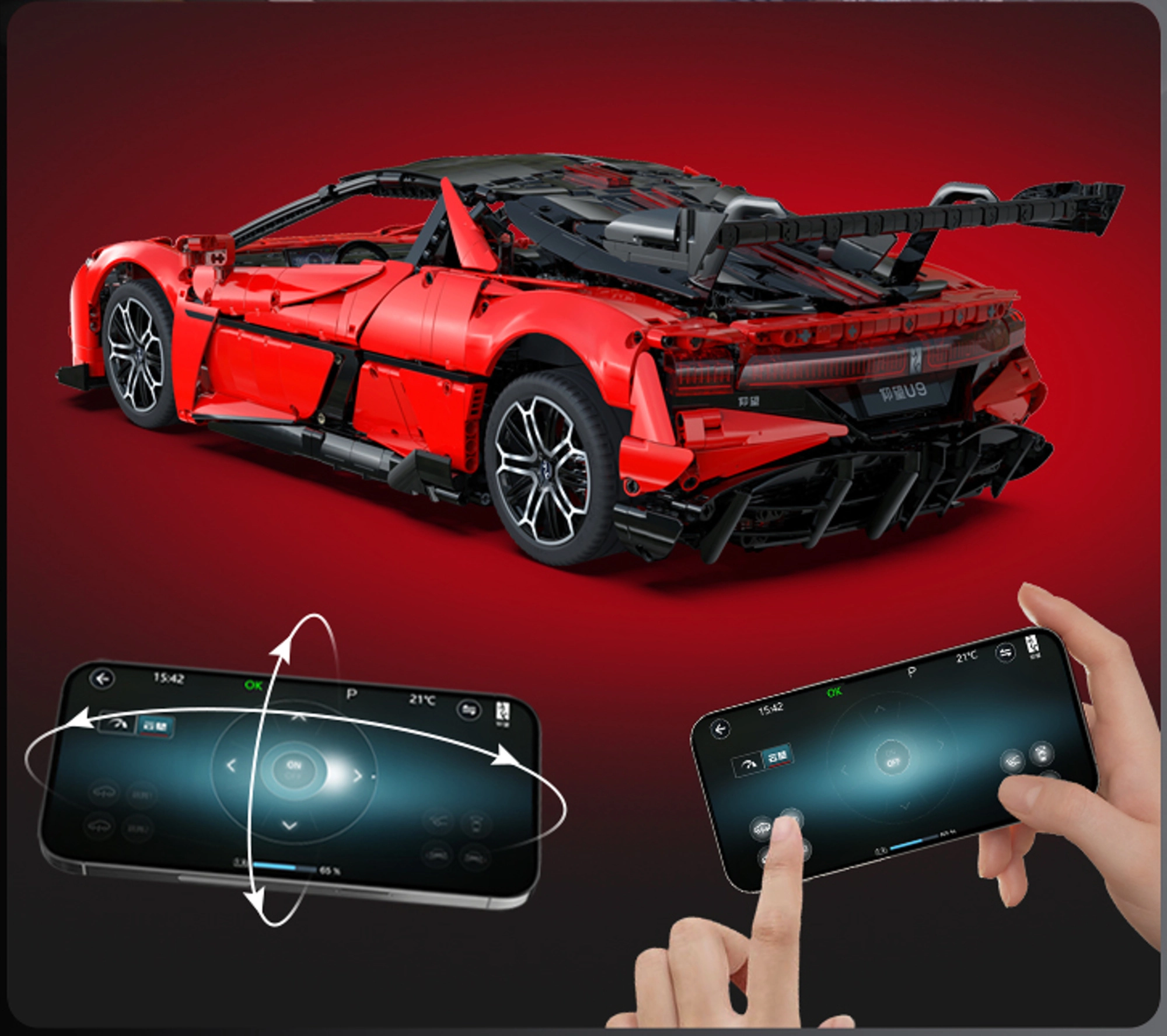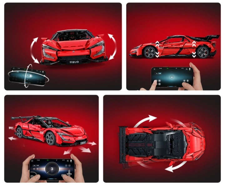 Erleben Sie die Kombination aus präzisem Bauen und smarter Unterhaltung. Dieses offiziell lizenzierte Modell des BYD YANGWANG U9 im Maßstab 1:8 misst aufgebaut etwa 60,5 × 29,5 × 16 cm und fängt die aerodynamischen Linien, die rote Karosserie mit aufgedruckten Details und das sportliche Fahrwerk originalgetreu ein. Mit der Steuerung über die Bluetooth-App beschleunigt das Modell auf bis zu 3,8 km/h und beherrscht Vorwärts-/Rückwärtsfahrt sowie Lenken.