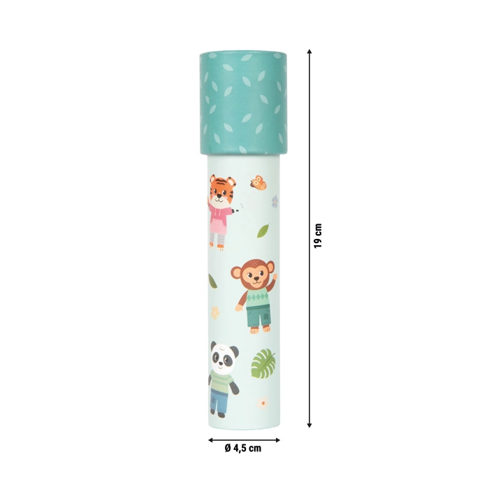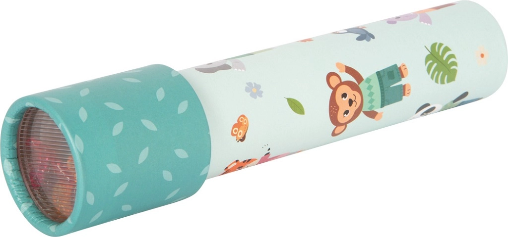 Der Kaleidoskop Dschungelfreunde SMALL FOOT begeistert Kinder ab 3 Jahren mit einem verspielten Design mit Motiven von Tiger, Elefant, Affe, Zebra, Panda und Nilpferd. Bei jeder Drehung entstehen im Inneren neue geometrische Muster, die die Fantasie anregen und Kindern helfen, Farben und Formen zu erkennen.