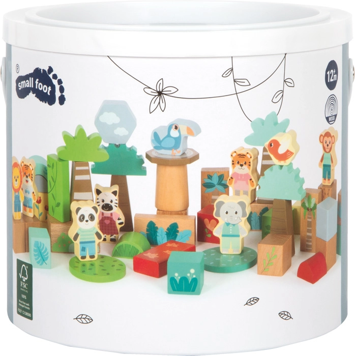 Gefertigt aus 100 % FSC-zertifiziertem Holz mit glatter Oberfläche und einer harmonischen Farbpalette, die zum natürlichen Look des Materials passt. Das Bauset ist ideal zur Förderung von Hand-Auge-Koordination, Geduld und Konzentration und ergänzt perfekt weitere Spielzeuge aus der Themenreihe Dschungel.