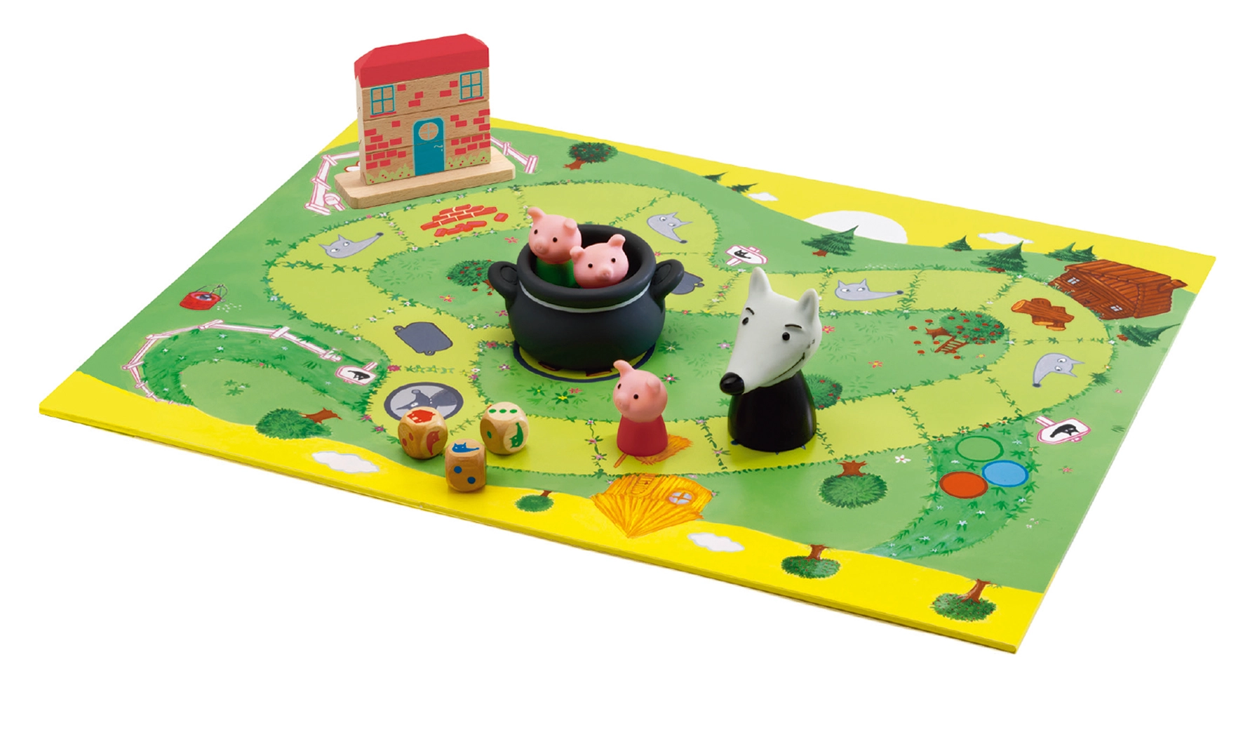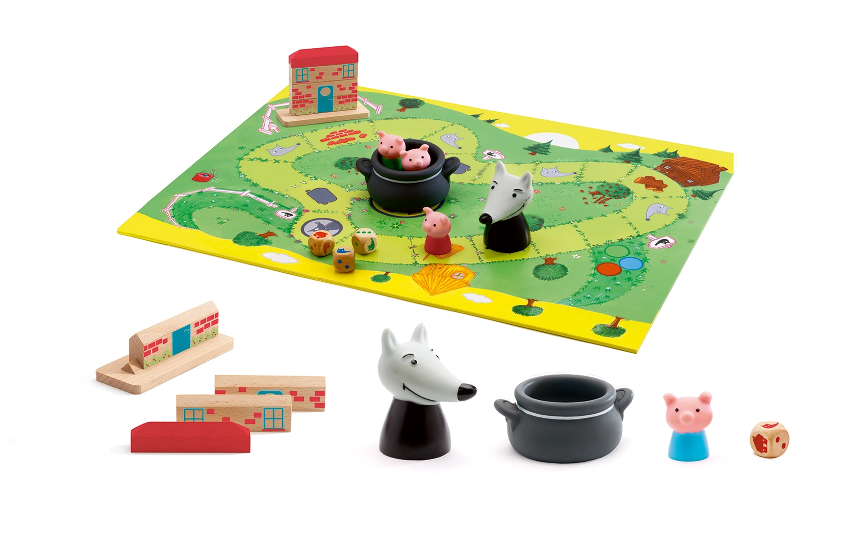 Taucht ein in das Märchen von den drei kleinen Schweinchen und helft ihnen, rechtzeitig ein sicheres Ziegelhaus zu bauen, bevor der Wolf sie erwischt. Die Spieler spielen nicht gegeneinander, sondern gemeinsam – jeder Zug zählt und entscheidet darüber, ob die Schweinchen entkommen. Dank der verständlichen Regeln und der kurzen Spieldauer ist das Spiel ideal für jüngere Kinder.