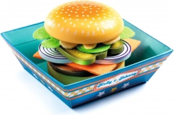 Mit dem DJECO Bistro Kelly & Johnny verwandeln sich Kinder in kleine Köche und Servicekräfte. Sie setzen den Burger aus einzelnen Schichten zusammen, servieren Pommes und ein Getränk und erstellen ihr eigenes Menü. Die Teile aus lackiertem Holz und weichem Filz liegen angenehm in der Hand, lassen sich leicht schichten und eignen sich ideal für wiederholtes Spielen.