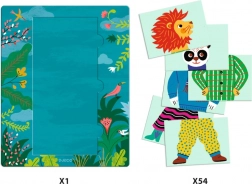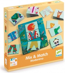 Mix & Match Modanimo ist ein kreatives Brettspiel, in dem Kinder Tierteile zusammensetzen und so witzige Kombinationen oder korrekte Sets erstellen. Einfache Regeln und fesselnde Illustrationen sorgen dafür, dass selbst die Kleinsten Spaß am Spiel haben.