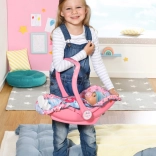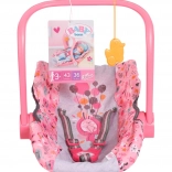 Dieser stylische rosa Autositz und Trage für BABY born Puppen ist für Kinder ab 3 Jahren konzipiert. Dank des stabilen Kunststoffkorpus, des weichen Bezugs und des Sicherheitsgurts bietet er der Puppe Komfort und Halt beim Tragen und Ausruhen. Der drehbare Griff ermöglicht den schnellen Wechsel vom Tragen zum Sitzen oder Wippen.