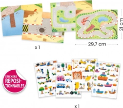 Entdecke die Welt des Verkehrs mit den verschiebbaren Stickern von DJECO. Kinder können die Sticker ganz einfach auf große Themenhintergründe kleben, versetzen und immer wieder verwenden. Ideal für unterwegs, im Restaurant oder zu Hause – ganz ohne Klebstoff und ohne Unordnung.