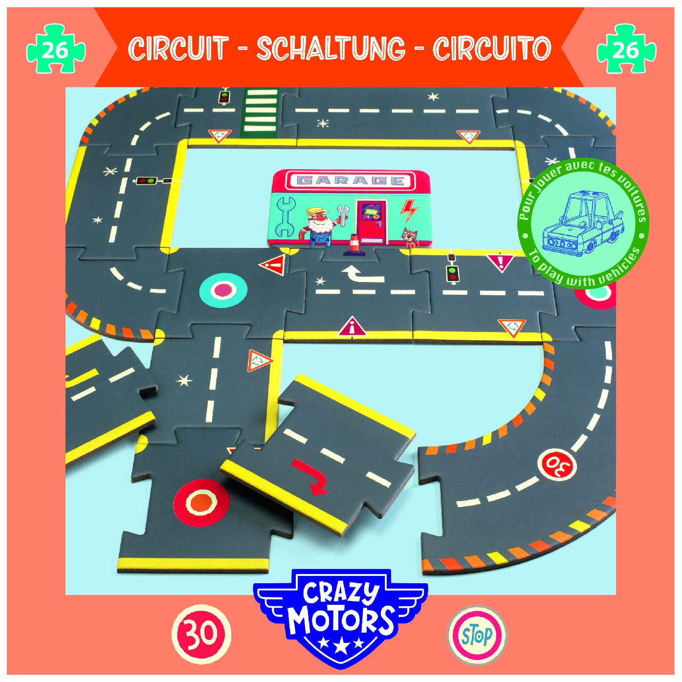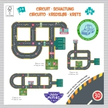Dieses große Straßenpuzzle bietet Kindern endlose Möglichkeiten, Strecken für ihre Lieblingsautos zu bauen. Die Teile greifen dank der Puzzleform präzise ineinander und ergeben ein zusammenhängendes Netz aus Straßen mit Kreuzungen, Kurven und Parkzone. Der hochwertige Druck mit Verkehrselementen unterstützt das spielerische Lernen von Verkehrszeichen und -regeln.