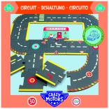 Verschiedene Teilformen ermöglichen gerade Abschnitte, Kurven und einen Kreisverkehr – ideal zum Bauen individueller Rennrunden.