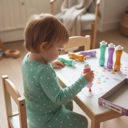 Die DJECO Schaumstifte mit perlmuttartigem Glanz sind für kleine Künstler konzipiert. Dank der breiten Schaumspitze lässt sich die Farbe gleichmäßig auftragen, sie läuft nicht und ist leicht von der Haut und den meisten Textilien auswaschbar. Der sanfte Perlmutt-Effekt verleiht jedem Bild einen magischen Glanz.