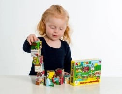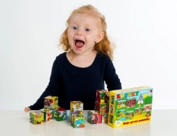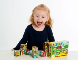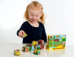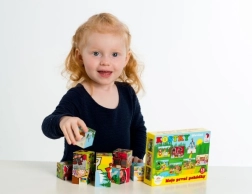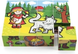 Zwölf Würfel ermöglichen es Kindern, sechs verschiedene Szenen zu legen – zum Beispiel Rotkäppchen oder Hänsel und Gretel. Ein Spielspaß, der nicht so schnell langweilig wird.