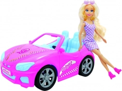 Die stylische Puppe im karierten Outfit sitzt leicht im Fahrzeug, sodass Kinder sofort zu Ausflügen aufbrechen und „Fahrerin spielen“ können.