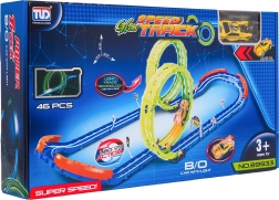 Diese fluoreszierende Rennstrecke ist ideal für Kinder ab 3 Jahren. Dank der zwei großen Loops und der stabilen seitlichen Barrieren fährt das Auto auch durch enge Kurven sicher hindurch. Leuchtende Elemente bringen Fahrten in der Dämmerung zum Strahlen und verwandeln das Zimmer in eine kleine Rennarena.
