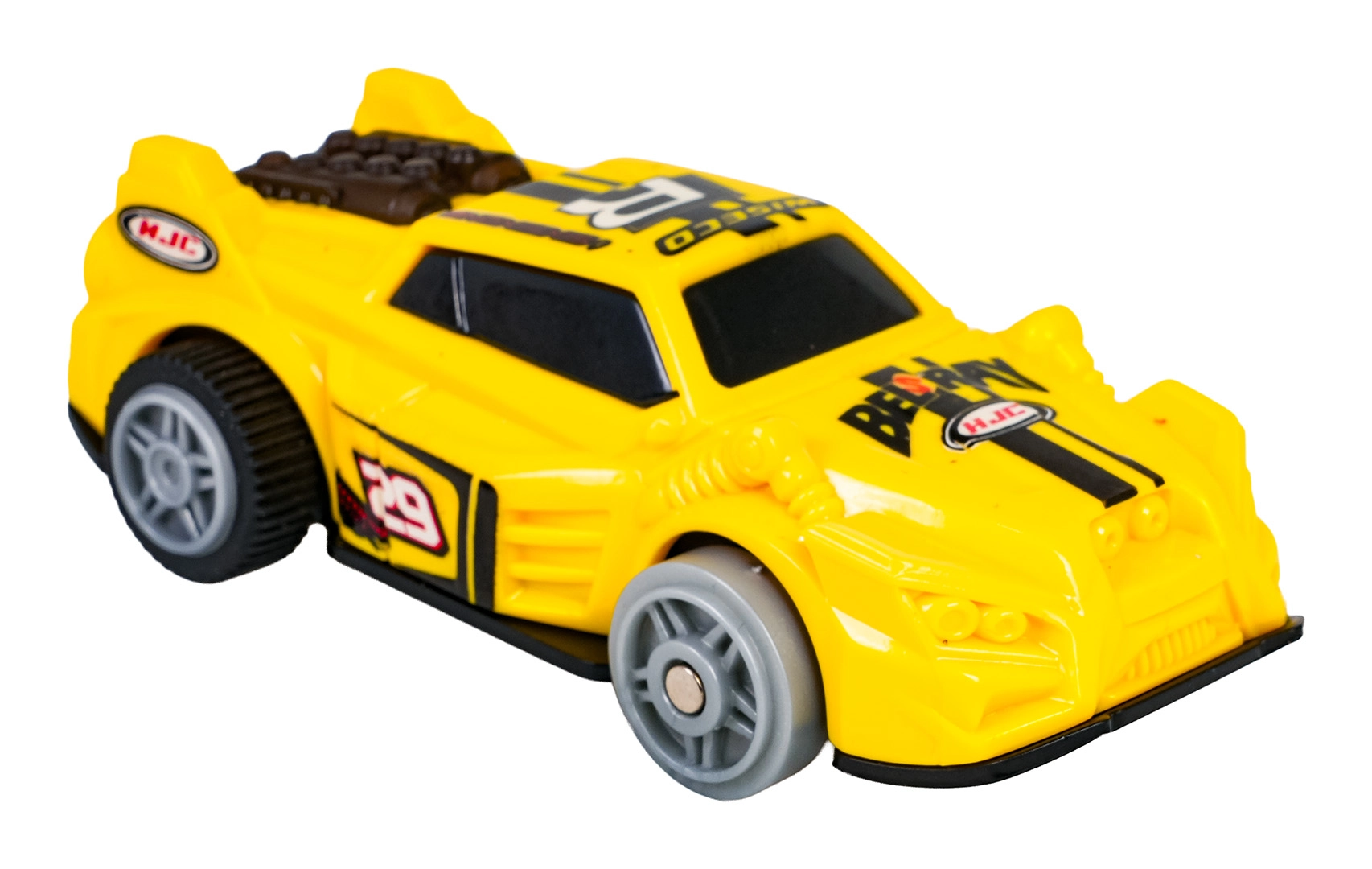 Das kompakte gelbe Fahrzeug mit leichtgängigem Lauf und Rücklicht verstärkt den Spaß bei Nachtfahrten. Betrieb mit 2× AAA (nicht im Lieferumfang enthalten).