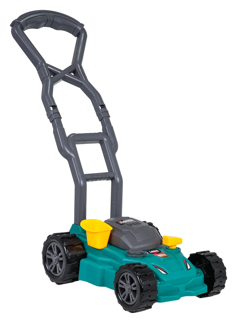 Dieser Kinder-Rasenmäher imitiert echte Gartenarbeit – er gibt Motorgeräusche von sich und auf der Oberseite leuchten blinkende grüne Lichter. Dank der leichten Kunststoffkonstruktion lässt er sich von Kindern leicht bedienen und fördert dabei Motorik, Vorstellungskraft und Rollenspiele.