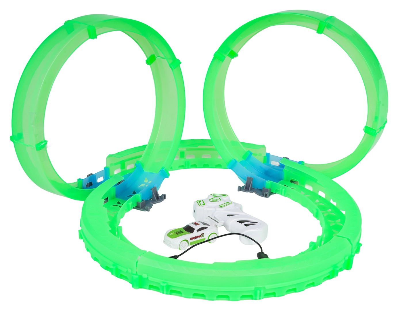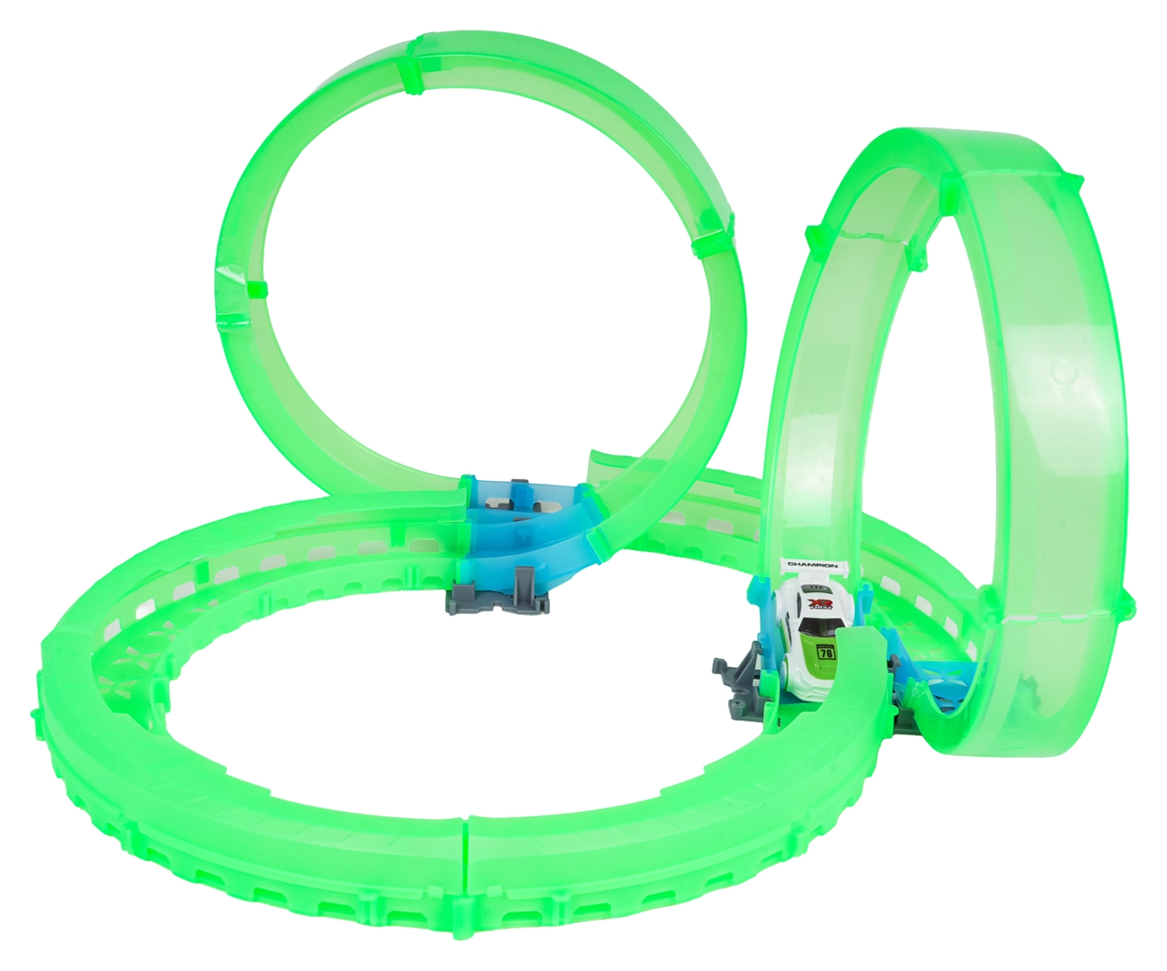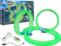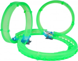 Diese kompakte Rennbahn mit leuchtenden, transluzenten Teilen sorgt für actionreiche Fahrten mit faszinierenden Lichteffekten. Das LED-beleuchtete Auto saust durch Loopings und Kurven und hinterlässt im Dunkeln eine effektvolle Spur. Dank der Fernsteuerung haben Sie Geschwindigkeit und Richtung stets unter Kontrolle.