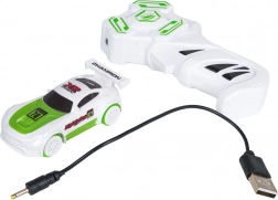 Das kompakte Rennauto mit LED-Beleuchtung steuern Sie mit der beiliegenden Fernbedienung. Das Laden erfolgt über das mitgelieferte USB-Kabel.