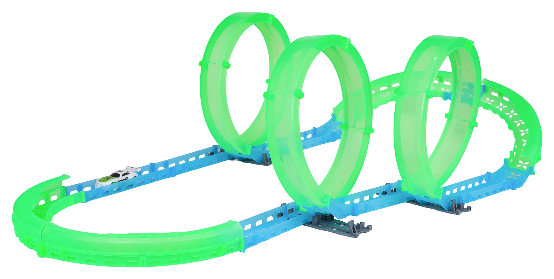 Die fluoreszierende Strecke leuchtet nach dem Aufladen durch Licht und schafft eine magische nächtliche Rennatmosphäre, die Kinder begeistert.