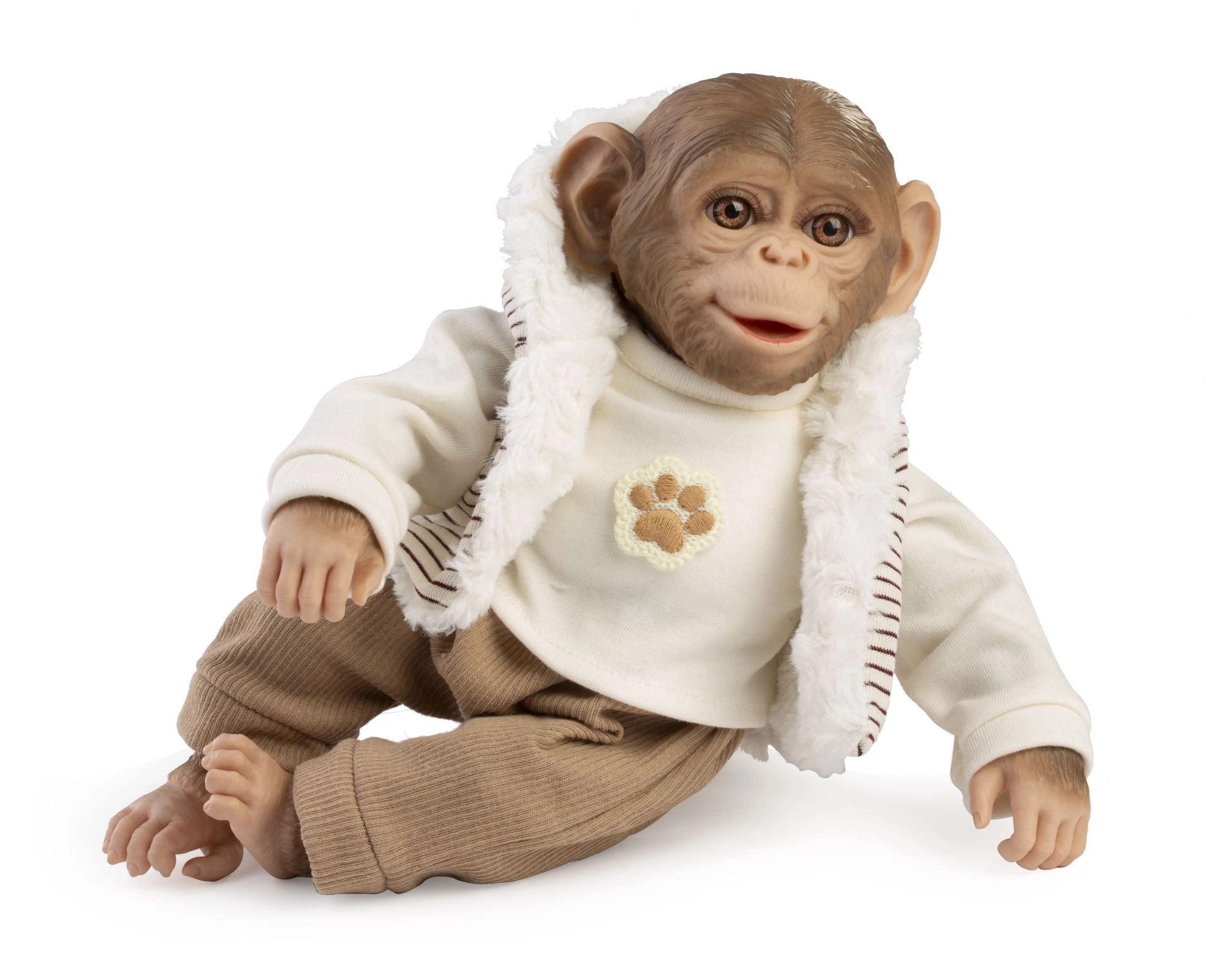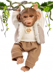 Elastische Stoffe und durchdachte Schnitte erleichtern das Anziehen des Äffchens oder der Puppe und fördern die Entwicklung der Feinmotorik.