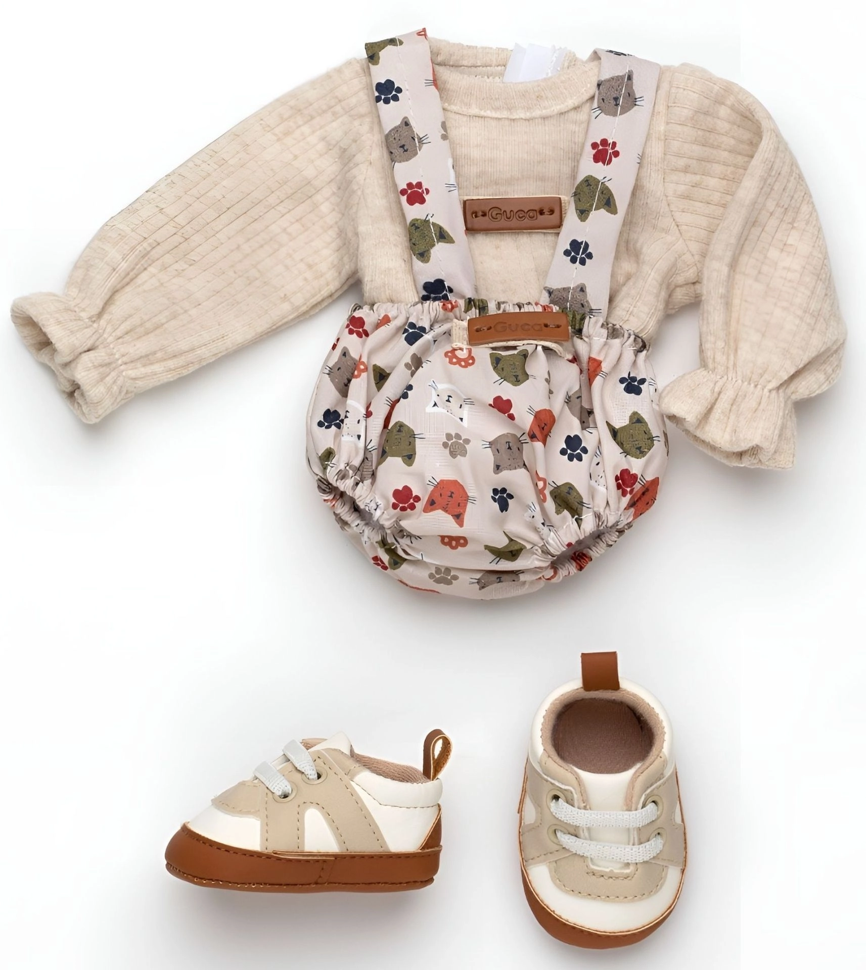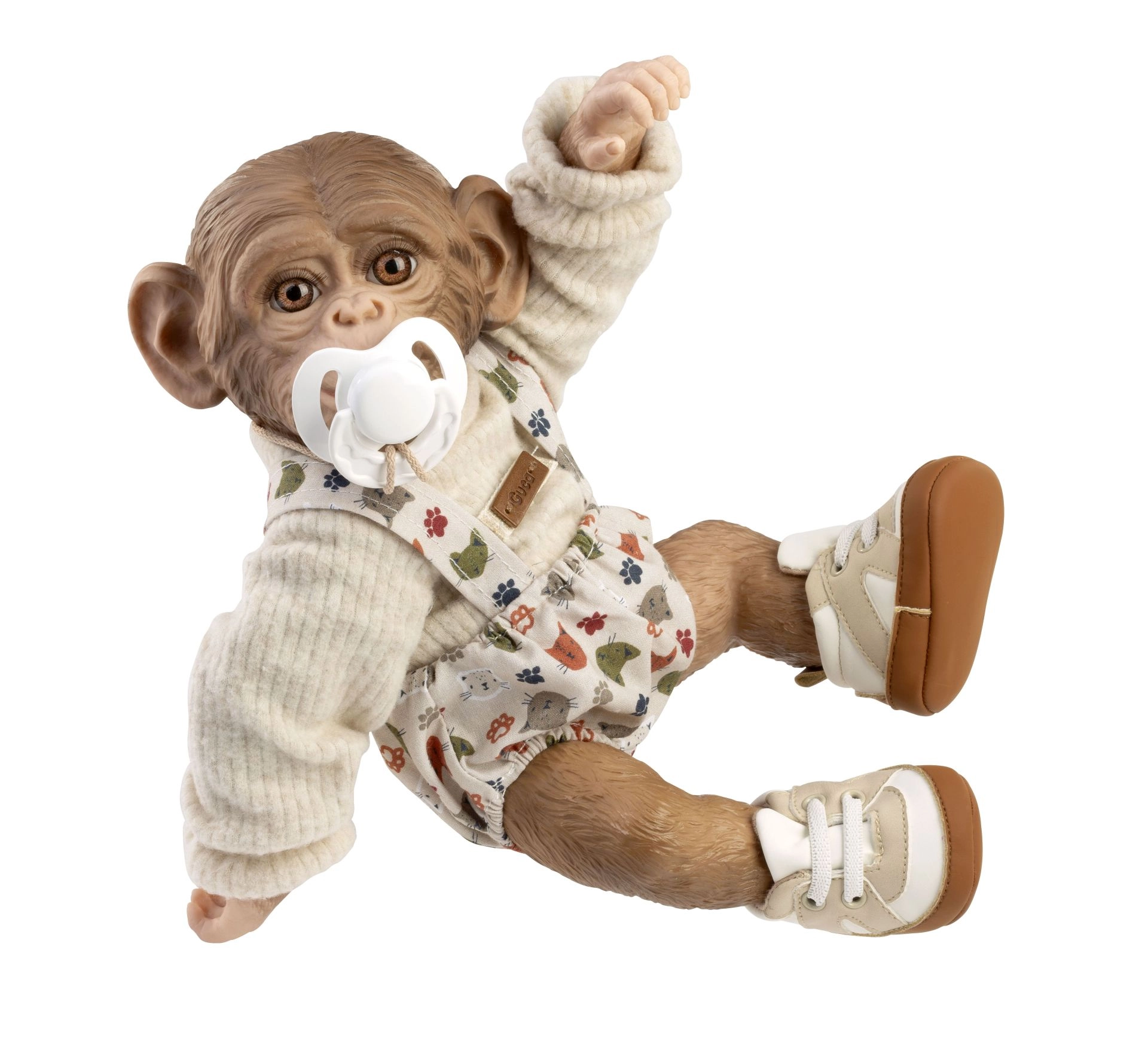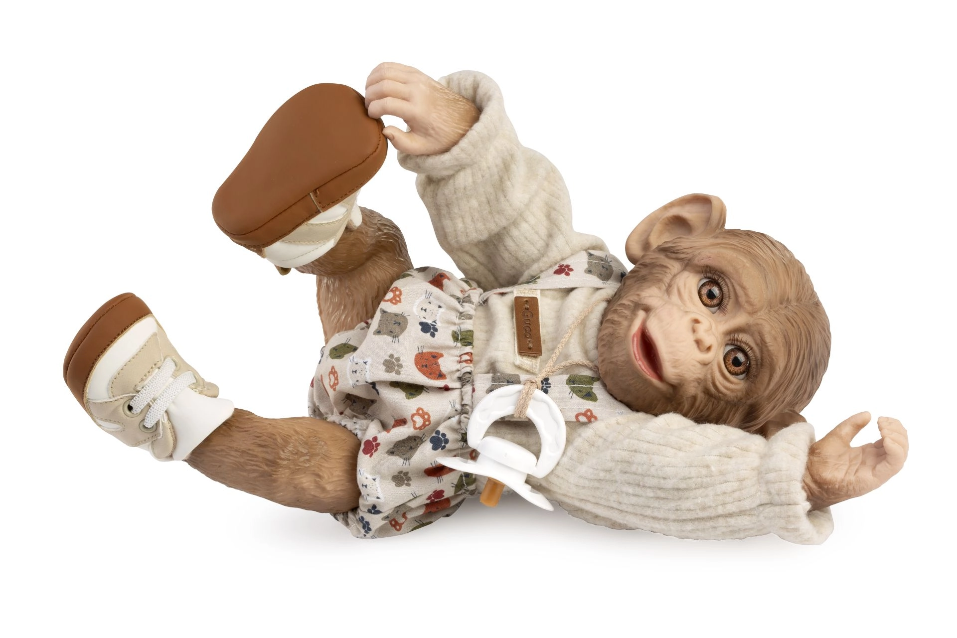 Zwei Kleidungsteile und Schühchen ergeben ein harmonisches Outfit für das Reborn-Äffchen-Baby mit 32 cm – spielbereit direkt nach dem Auspacken.