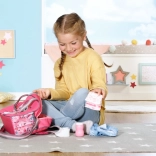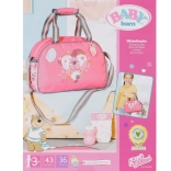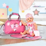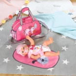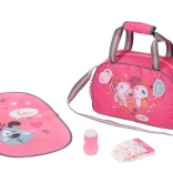 Die Tasche enthält eine Wickelauflage, eine Ersatzwindel und eine Puderdose – Kinder haben die komplette Ausstattung für die Pflege ihrer Puppe stets griffbereit.