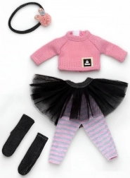 Im Set finden Sie vier Kleidungsstücke und ein passendes dekoratives Haarband, mit denen Sie mühelos verschiedene Outfits für jeden Anlass zusammenstellen. Das Set ist praktisch in einer Kunststoffhülle auf einer Kartonunterlage verpackt, sodass alles übersichtlich verstaut und sofort zum Verschenken bereit ist.
