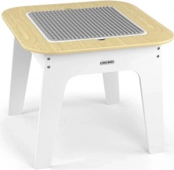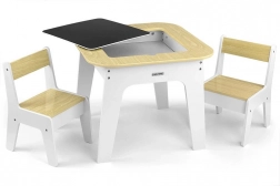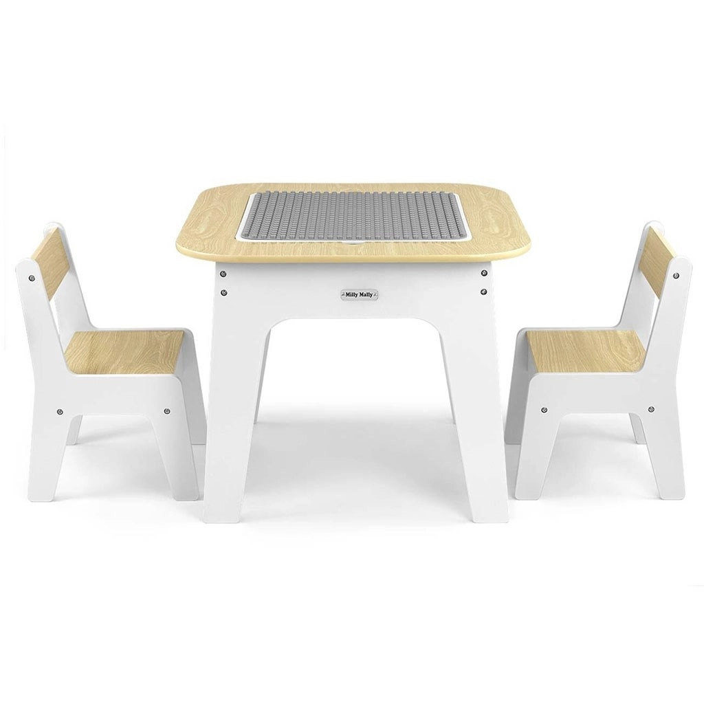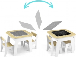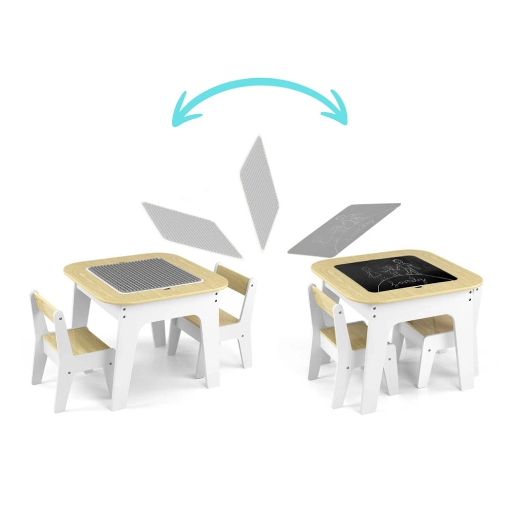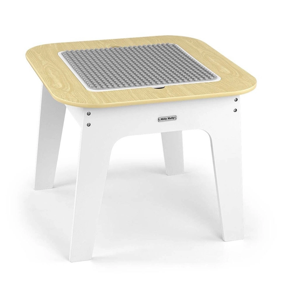 Das Olaf Blocks Set schafft einen kreativen Platz zum Spielen und Lernen. Eine Seite der Tischplatte ist für das Bauen mit Steinen ausgelegt, die andere ist glatt zum Zeichnen, Schreiben und Basteln (Zeichnen mit Kreide möglich). Die abnehmbare Platte verbirgt eine geräumige Box für Spielzeug und Bastelbedarf, so ist alles griffbereit und gleichzeitig ordentlich verstaut.