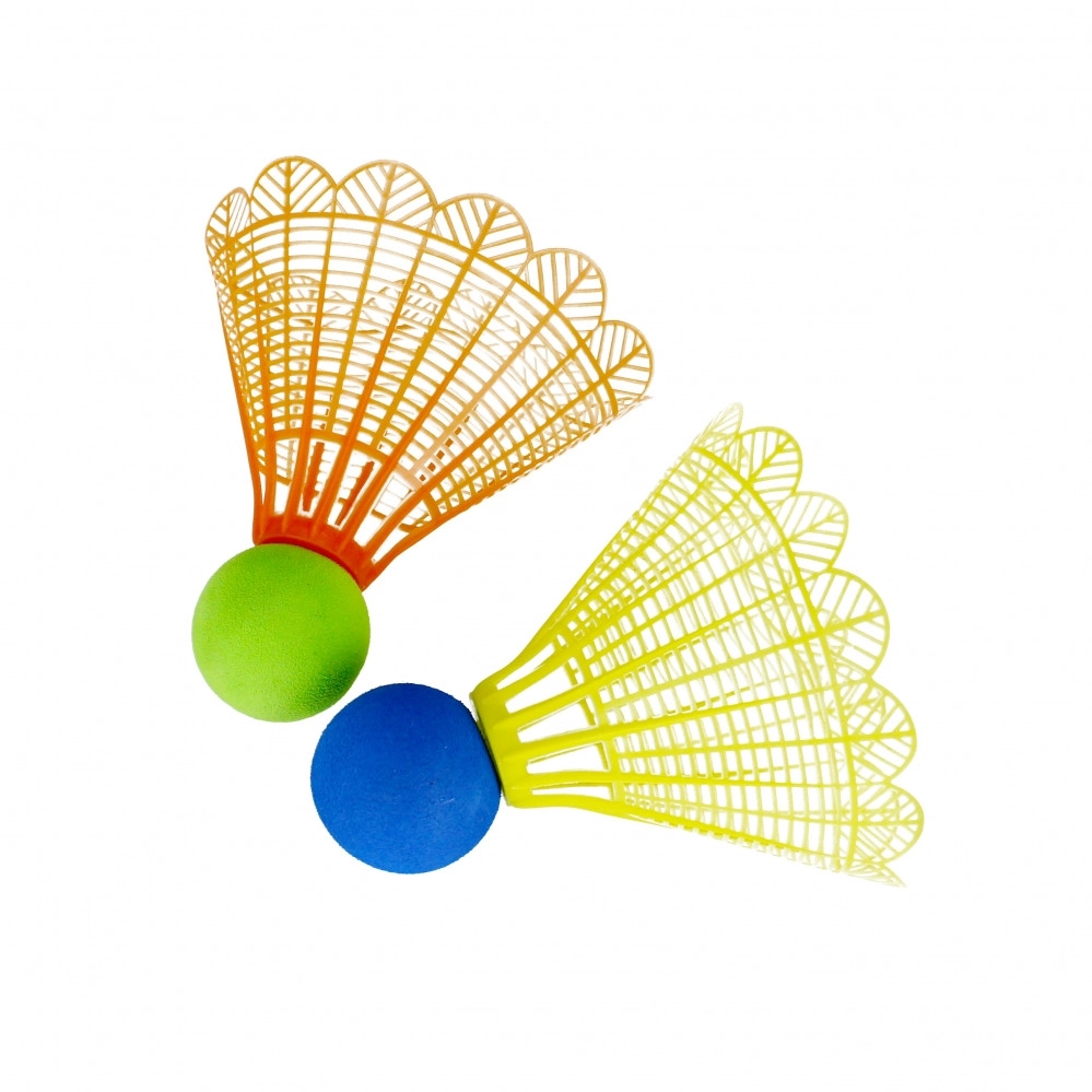 Farbige Körbchen mit Schaumkern fliegen langsamer und stabiler, sodass Kinder leichter treffen und längere Ballwechsel halten können.
