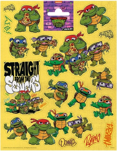 Diese farbenfrohen und robusten Aufkleber mit den Helden der TEENAGE MUTANT NINJA TURTLES begeistern jeden kleinen Fan. Das größere Format ermöglicht ein einfaches Aufkleben und eine auffällige Gestaltung von Schulmaterial, Spielzeug oder Geschenkverpackungen.