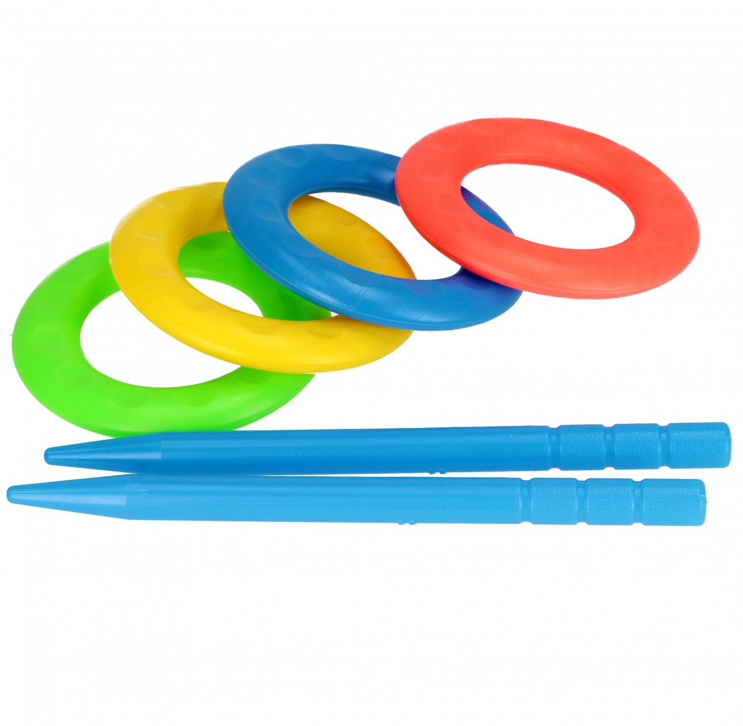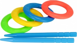 Der Lieferumfang umfasst 2 Stäbe und 4 Ringe, sodass sich leicht Wettbewerbe für Einzelne und Teams organisieren lassen. Dank der kompakten Maße lässt sich das Set bequem in den Garten, in den Park oder in den Urlaub mitnehmen.
