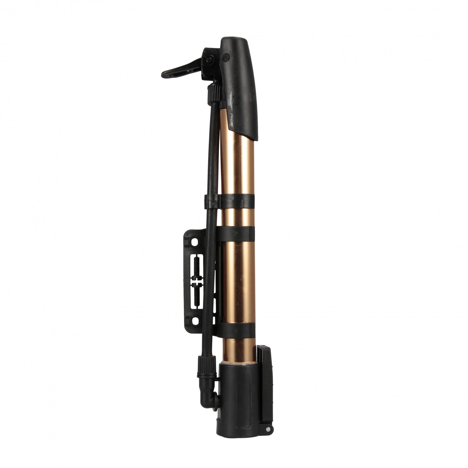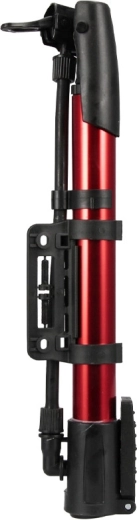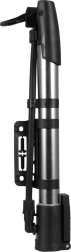 Leichte und tragbare Pumpe mit Metallzylinder und flexiblem Schlauch – ein großartiger Helfer für Radfahrende und Familien mit Kindern. Die kompakten Abmessungen erleichtern das Tragen im Rucksack oder die Montage am Fahrradrahmen mit der mitgelieferten Halterung.