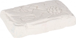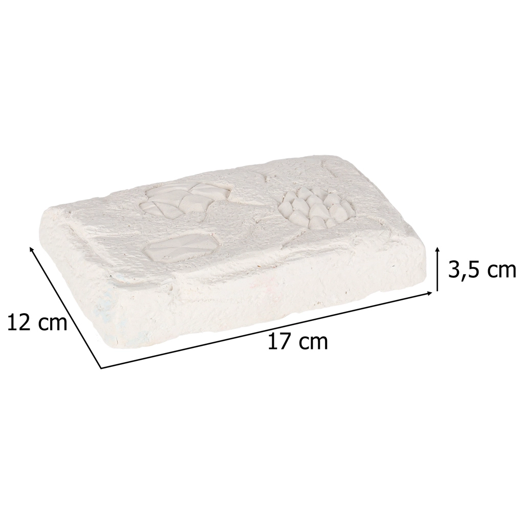 Der Gipsblock verbirgt bunte Steine und Muscheln. Kinder legen sie Schritt für Schritt mit Meißel, Hammer und Pinsel frei – genau wie kleine Archäologen.