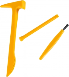Leichte Kunststoffwerkzeuge liegen gut in Kinderhänden und ermöglichen bequemes, sicheres Abmeißeln und Reinigen der Funde.