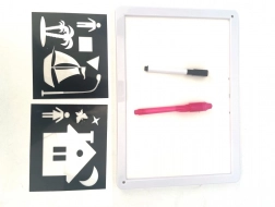 Dank der leichten und tragbaren Konstruktion ideal für zu Hause und unterwegs. Enthalten sind Formschablonen (Haus, Schiff, Rakete, Figuren, Mondmotive), die die Entwicklung von Kreativität, Fantasie und Feinmotorik fördern.