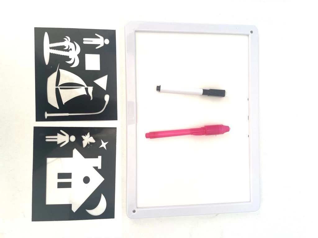 Das A4-Zeichenbrett, das im Dunkeln leuchtet, ist ein tolles Geschenk für kleine Künstler. Mit dem speziellen Leuchtstift erstellen Kinder Lichtmuster, die nach dem Ausschalten im Dunkeln strahlen und nach und nach verblassen, sodass sie immer wieder neu gestalten können. Die andere Seite dient als abwischbare weiße Tafel für klassisches Zeichnen.