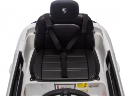 Die 2,4-GHz-Fernsteuerung bietet 3 Geschwindigkeiten und eine Not-Stopp-Taste. Dank des Sicherheitsgurts auf dem Sitz aus Kunstleder ist das Kind stets gut gesichert.