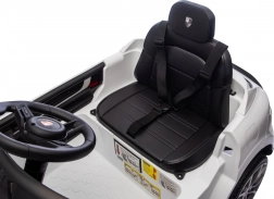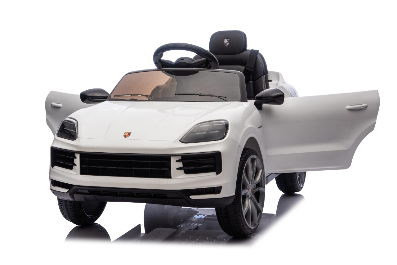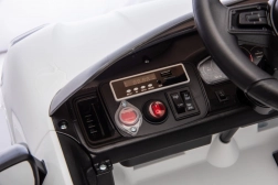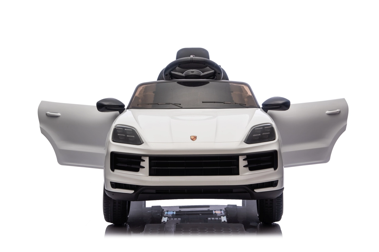 Für maximale Sicherheit für Eltern und Kinder gibt es eine 2,4-GHz-Fernbedienung mit drei Geschwindigkeiten und einer Not-Stopp-Taste. Das Interieur begeistert mit einem schwarzen Sitz aus Kunstleder mit Gurt, einem Funktionspanel mit MP3/Bluetooth/FM sowie Hup- und Soundtasten am Lenkrad. Öffnende Türen, LED-Leuchten und hochwertige Verarbeitung sorgen für einen attraktiven Look und täglichen Spielspaß.