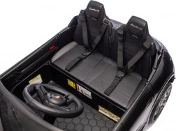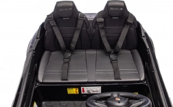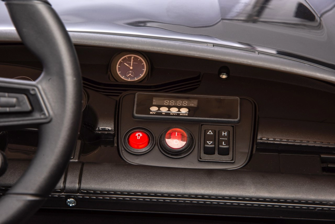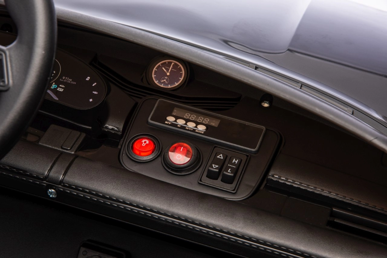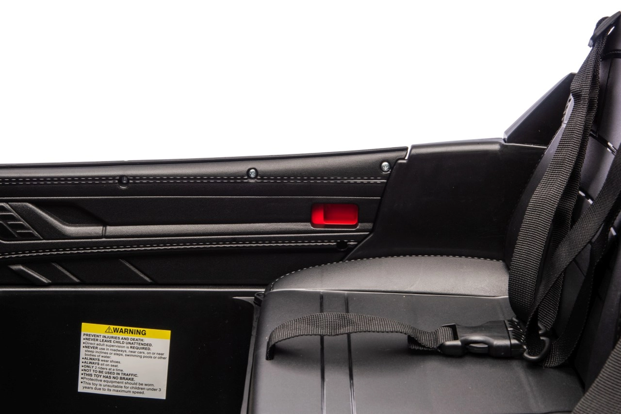 Für die Sicherheit sorgen Sicherheitsgurte, öffnende Türen für leichtes Einsteigen und die elterliche Kontrolle über die 2,4 GHz Fernbedienung mit Stop-Funktion. Für Unterhaltung sorgt das Audiopanel mit MP3, FM-Radio, Bluetooth, vorinstallierten Melodien und einer Hupe im Lenkrad. Front-LED-Lichter und ein separater Lichtschalter sorgen für die richtige Atmosphäre.