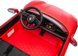 Eltern schätzen die sichere 2,4-GHz-Fernbedienung mit drei Geschwindigkeiten und Not-STOP-Taste. Kinder haben Spaß mit dem Audio-Panel – MP3, FM-Radio, vorinstallierte Melodien, Bluetooth und Hupe im Lenkrad. Das Auto verfügt über LED-Lichter, öffnende Türen und einen Zweisitzer aus schwarzem Eco-Leder mit Sicherheitsgurten.