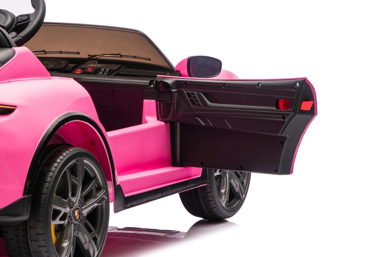 Ein wahr gewordener Traum kleiner Fahrer: Das lizenzierte, vom Porsche Taycan Turbo S inspirierte Auto besticht durch realistische Außen- und Innenraumdetails, einen Doppelsitz aus schwarzem Kunstleder sowie komfortables Fahren dank EVA-Rädern und rundum Federung. Die starke 24V-Batterie und zwei 90‑W‑Motoren liefern gleichmäßige Leistung, während die Soft‑Start-Funktion sanft und ohne Ruckeln anfahren lässt.