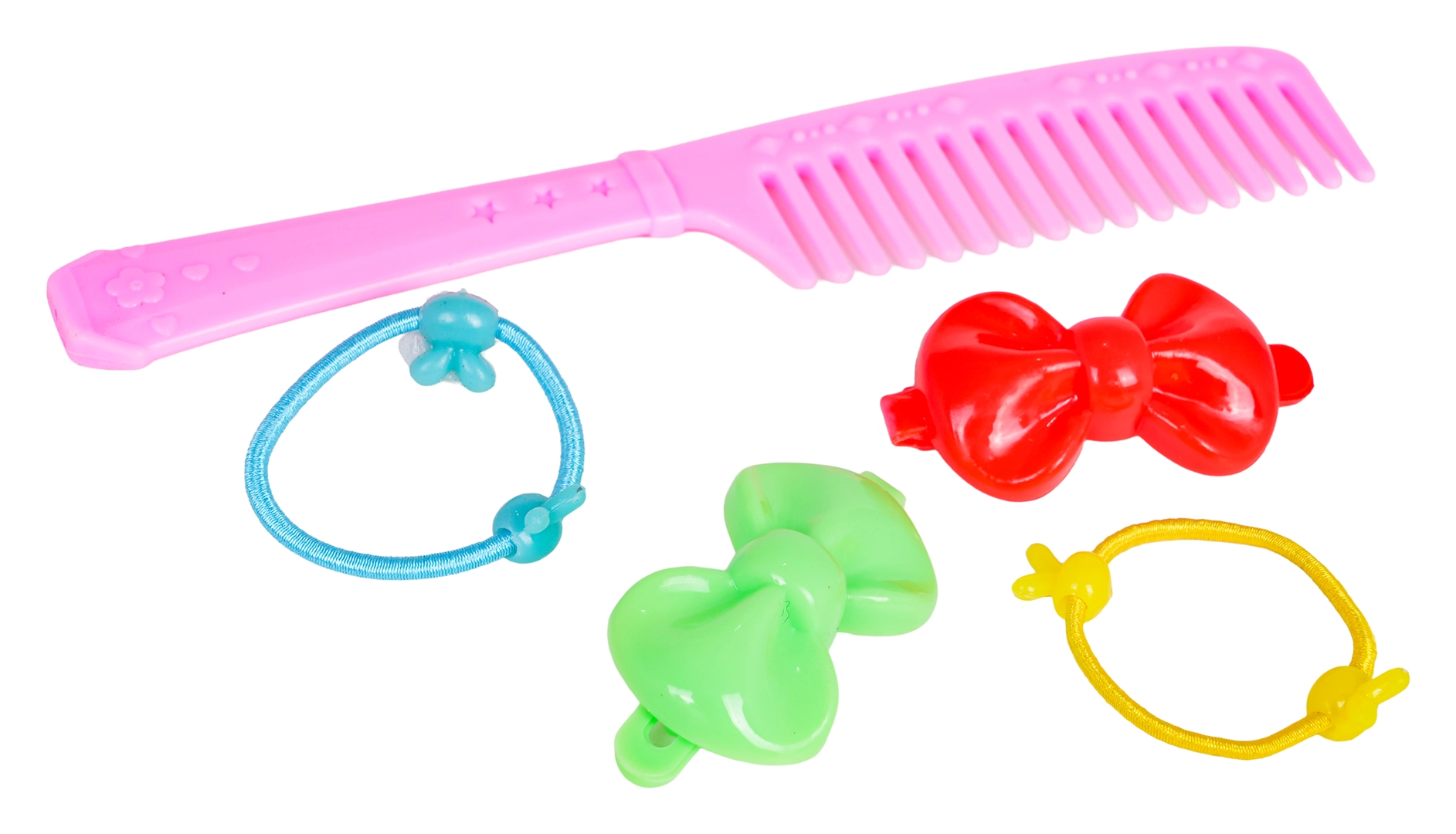 Kamm, zwei Haarklammern und zwei Haargummis ermöglichen Kämmen, Verzieren und das Verändern des Puppenlooks ganz nach der Fantasie des Kindes.
