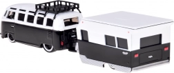 Entdecken Sie zeitloses Design einer Straßenlegende im Miniaturformat. Dieses Set bietet ein präzise umgesetztes Modell des VOLKSWAGEN Van Samba mit Wohnwagen in eleganter schwarz‑weißer Farbgebung. Metallteile der Karosserie sowie sorgfältig ausgearbeitete Details an Fenstern, Rädern und Leuchten verleihen den Modellen einen realistischen Look, den sowohl Sammler als auch Kinder beim kreativen Spiel schätzen.
